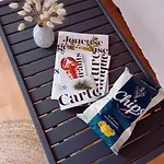 Gästerna kan laga sina egna måltider i ett komplett kök och använda sig av utomhusmatplats. I köket finns även kylskåp, ugn och köksredskap.